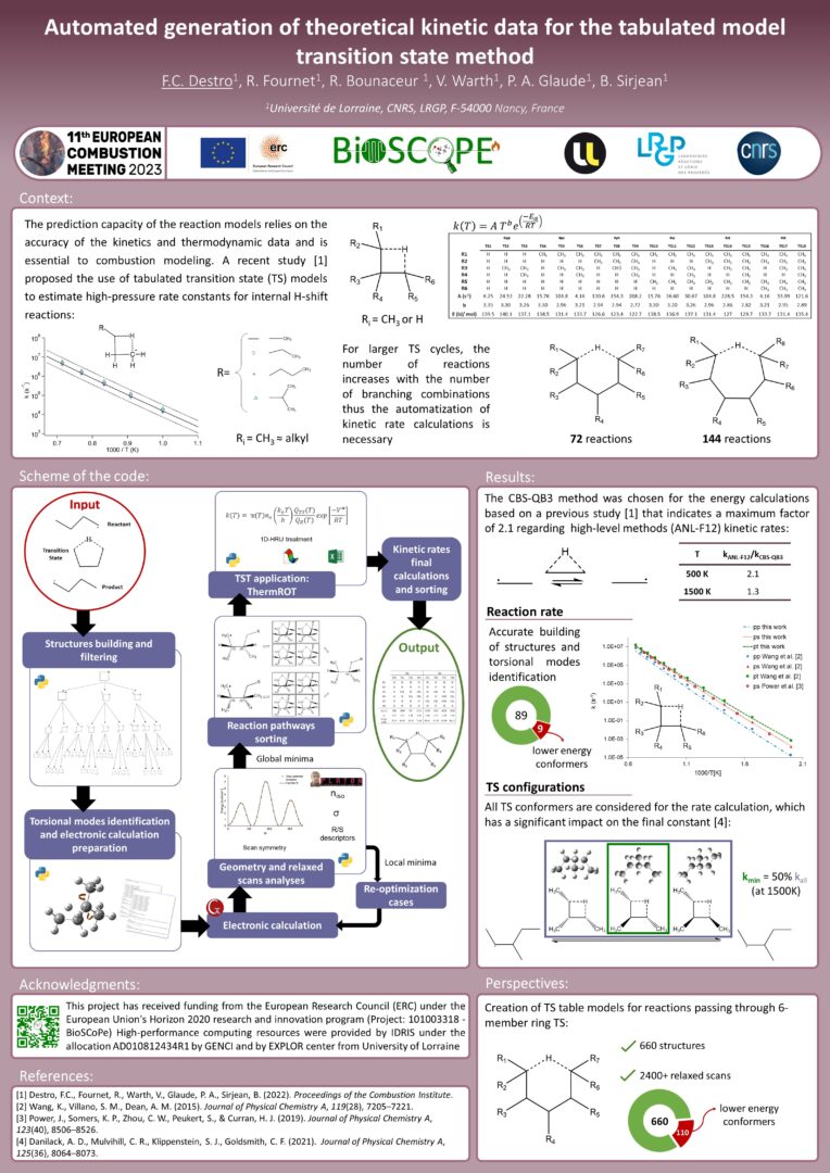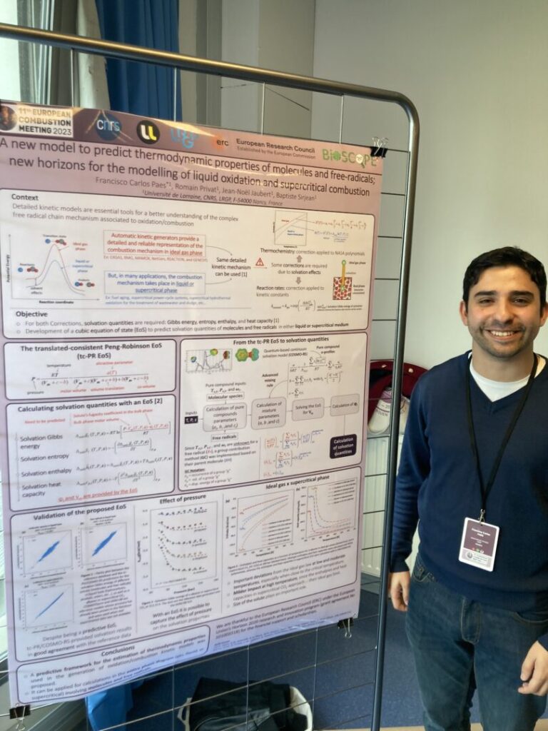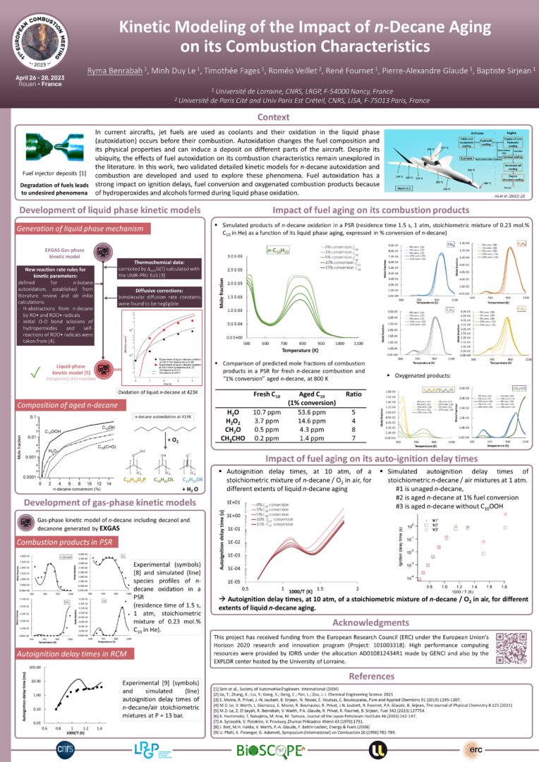 De nombreux membres de l’équipe ont présenté les résultats du projet BioSCOPE lors du 11th European Combustion Meeting qui s’est déroulé du 26 au 28 avril 2023 à Rouen (https://ecm2023.sciencesconf.org/).